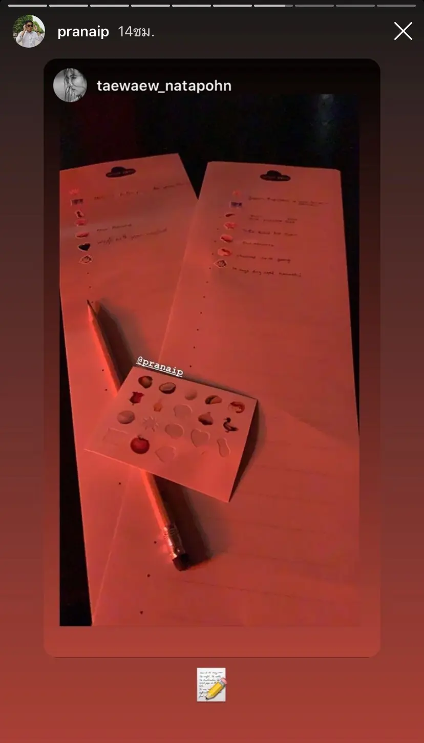 เผยโมเมนต์หวานออกมาเรื่อยๆสำหรับ แต้ว ณฐพร ที่กำลังปลูกต้นรักกับ ไฮโซณัย หรือ ประณัย พรประภา น้องชายสุดที่รักของ ไฮโซพก หวานใจซุปเปอร์สตาร์ อั้ม พัชราภา นั้นเอง โดยสาว แต้ว ได้โพสต์สตอรี่ในอินสตาแกรมขณะกำลังทานอาหารดินเนอร์สุดหรู
