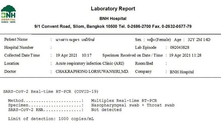 ล่าสุดเจ้าตัวได้มีการโชว์ผลตรวจเป็นรอบที่ 3 พร้อมแชร์ความรู้เกี่ยวกับดูแลตัวเองให้รอดพ้นจากโควิด19 ว่า