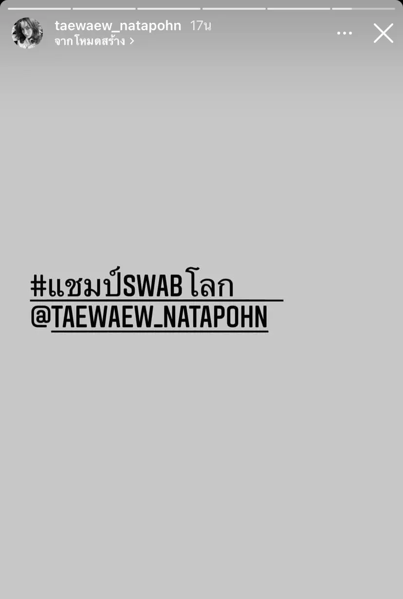 อย่างไรก็ตามจากเหตุการณ์ครั้งนี้แต้วเองก็ต้องกักตัว และมีการป้องกันตัวเองจาก COVID-19 ยิ่งขึ้นกว่าเดิม เพื่อความปลอดภัยของตัวเองและคนรอบข้าง ขอให้ทุกท่านปลอดภัยนะคะ #แชมป์swabโลก”