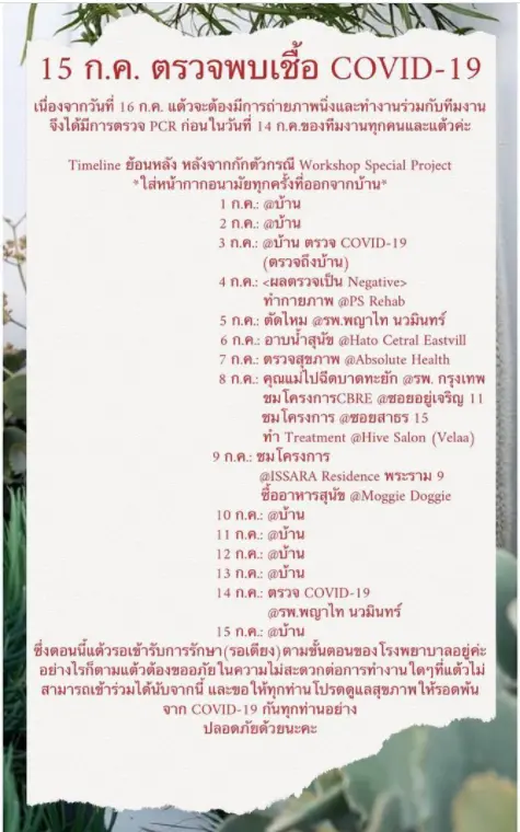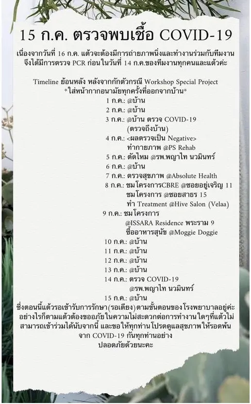 หลังจากที่ออกมาประกาศว่าติดเชื้อโควิด-19เเละทำการแจ้งไทม์ไลน์ย้อนหลัง 14 วันไปแล้ว สำหรับ แต้ว ณฐพร เตมีรักษ์ ก็โดนชาวเน็ตแหกไทม์ไลน์ ว่ามีการออกไปข้างนอกระหว่างเเล้วไม่ได้ใส่ลงในไทม์ไลน์