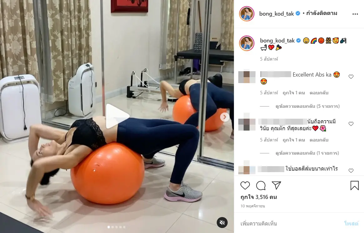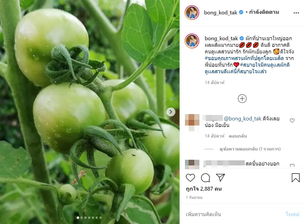 ซึ่งทั้งสองรูปก็เป็นคลิปที่สาวตั๊กกำลังออกกำลังกาย และรูปผักสวนครัวที่บ้านเขาใหญ่ของสาวตั๊กนั่นเอง