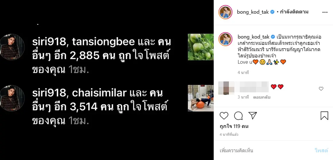 ถือเป็นโมเมนต์ประทับใจของ ตั๊ก บงกช นักแสดงสาวสุดเซ็กซี่ ที่ล่าสุดได้ออกมาโพสต์ไอจีแสดงความซาบซึ้งในพระมหากรุณาธิคุณ