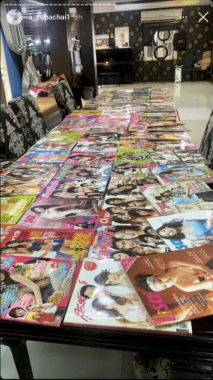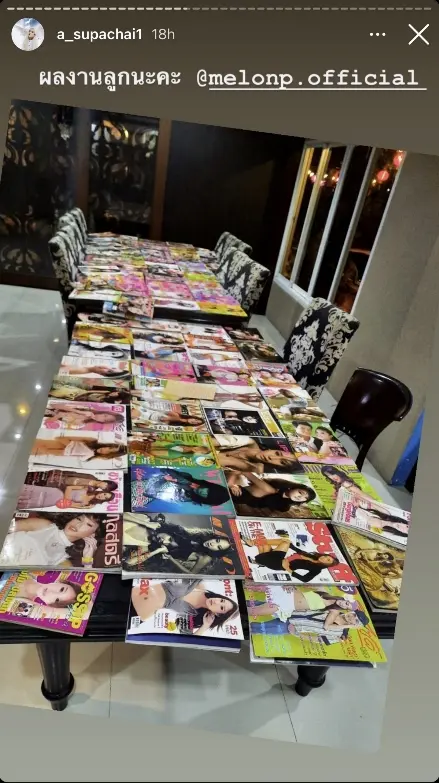 พี่เอ ศุภชัย อัปสตอรี่โชว์ผลงานบนปกนิตสารทั้งหมดตลอดชีวิตในวงการของ ‘แตงโม นิดา’ พร้อมข้อความว่า “ผลงานลูกนะคะ” นับ100กว่าชิ้น
