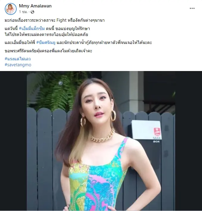 เอ็มมี่ แม็กซิม โพสต์เฟซบุ๊กเป็นกำลังใจ แตงโม นิดา ขอพรสิ่งศักดิ์ร่วมปกป้องคุ้มครองให้ แตงโม ปลอดภัยจากเหตุการณ์พลัดตกจากเรือกลางแม่น้ำเจ้าพระยา