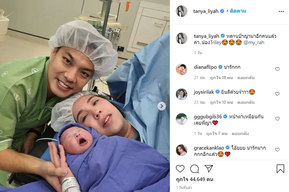 ต้องขอแสดงความยินดีกับนักแสดงสาวคนเก่งอย่าง ธัญญ่า ธัญญาเรศ ที่ตอนนี้ครอบครัวได้มีสมาชิกเพิ่มมาอีกคน นั่นก็คือ น้องไทลี่ หลานสาวคนใหม่ล่าสุด งานนี้คุณแม่อย่าง มัยร่า รามณรงค์ คงต้องเป็นปลื้ม เพราะลูกสาวน่ารักน่าเอ็นดูสุด เรียกได้ว่าขโมยใจคนทั้งบ้านกันไปเลย โดยเฉพาะตัวสาวธัญญ่าที่เห่อหลานคนใหม่แบบสุดๆ ไหนจะน้องลียา และ น้องเทรีย ที่ได้เพื่อนเล่นมาสร้างสีสันเพิ่มอีกหนึ่งคน เป็นข่าวดีที่ชวนให้ยิ้มจริงๆ