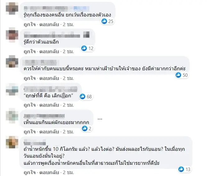 แต่ทางด้านของ เต๋า ทีวีพูล ก็ได้ออกวิจารณ์เรื่องหุ่นของ แอนชิลีอย่างดุเดือด เจ้าตัวได้พูดว่า มีเพื่อนที่กินข้าวกับแอนชิลี บอกว่าแอนกินเนื้อที่เป็นถาดๆ จากน้ำหนัก 72 กิโลกรัม ตอนนี้ขึ้นมา 80กว่าแล้ว พร้อมกับยกโพสต์ของ พรฟ้า ที่ถามหาเทคนิคลดบวมให้แอนชิลี เต๋า ทีวีพูลก็พูดต่อว่า แบบนี้ไม่เรียกบวม แบบนี้เรียกอ้วน เลิกสะกดจิตตัวเองกันได้แล้ว ไม่เกี่ยวกับไม่ได้ถ่าย แต่เพราะอ้วนขึ้น พร้อมทั้งยังพูดอีกว่า แคมเปญ #Realsizebeauty หมดยุคไป 5-6 ปีแล้ว อย่าเอาไปคุยกับต่างชาติเลย และอื่นๆ