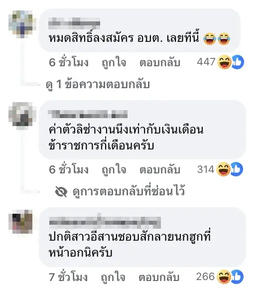 หลายคอมเมนต์ถึงกับหยอกว่า “เสียดายอนาคตเลย” หรือ “แบบนี้สอบเข้ารับราชการไม่ได้แล้วนะ” เนื่องจากในประเทศไทยยังมีภาพจำว่า ผู้ที่มีรอยสักนอกร่มผ้าอาจไม่ผ่านเกณฑ์บางหน่วยงานราชการ ทำเอาโซเชียลขำกันเป็นแถว