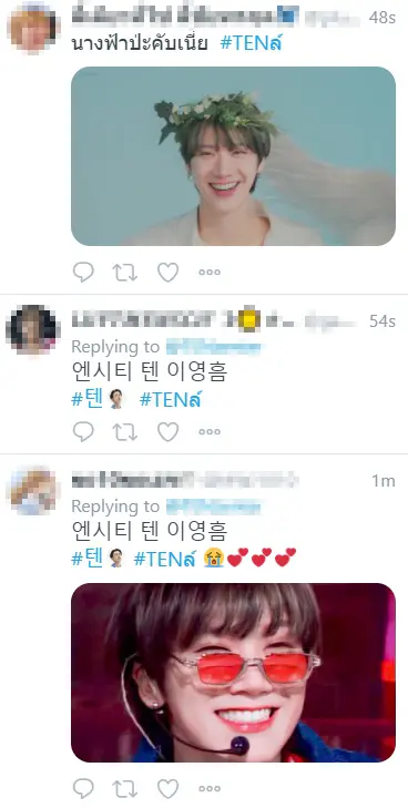 ล่าสุด แฟนๆ ได้คิดแฮชแท็กสุดครีเอทขึ้นมาในโลกทวิตเตอร์ #TENล์ พร้อมกับมาสาดความน่ารักกันล้นแฮชแท็ก มาเต็มทั้งรูป ทั้งคลิป หรือบางคนเองก็เอาน้องไปเทียบกับเจ้าเหมียวน้อยที่หอทั้งสองตัวของเตนล์คือ ลูอี และลีออน บอกเลยว่าดูไปดูมา น้องเตนล์ก็คล้ายเป็นเจ้าแมวเหมียวอยู่ไม่น้อยเหมือนกันนะเนี่ย สำหรับใครที่กำลังต้องการแรงใจของวันนี้ ก็เข้าไปรับวิตามินกันในแท็กกันได้เลย !