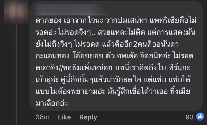 ซึ่งหลังจากที่เปิดตัวนักแสดงหลักออกไปนั้น ต้องบอกเลยว่าทำเอาหลายๆคนต่างจับตามองไม่น้อย พร้อมกับแสดงความคิดเห็นวิพากวิจารณ์กันไปต่างๆนาๆ แม้ไม่อาจจะรอดความคิดในด้านลบจากหลายๆความเห็นไปได้ แต่อย่างไรก็ตาม นี่ถือว่าเป็นโอกาสในการแสดงครั้งสำคัญของเธอ ที่จะได้โชว์ฝีไม้ลายมือในด้านการประชันบทบาทอย่างเห็นได้ชัด