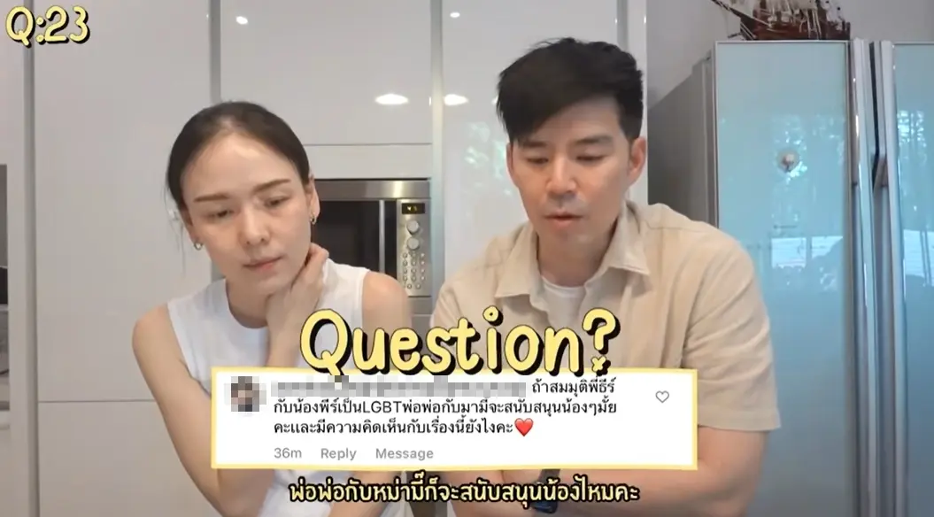 ล่าสุด บีม กวี และ ออย อฏิพรณ์ ได้มีการตอบคำถาม Q&A ต่อประเด็นที่ว่า ถ้าสมมุติพี่ธีร์ กับ น้องพีร์ เป็น LGBT พ่อพ่อกับหม่ามี๊จะสนับสนุนน้องไหม และมีความคิดเห็นกับเรื่องนี้อย่างไร?