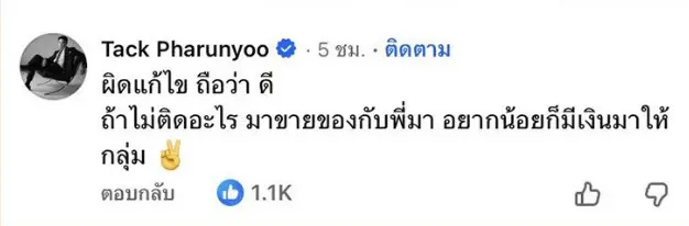 “ผิด แก้ไข ถือว่าดี ถ้าไม่ติดอะไร มาขายของกับพี่มา อย่างน้อยก็มีเงินมาให้กลุ่ม”