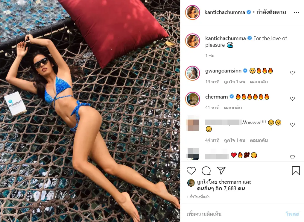 ส่งลูกไฟให้สาว ติช่า กันเป็นแถว เมื่อล่าสุด สาวมั่นสุดแซ่บ คว้าบิกินี่สีฟ้าสดใส นอนอวดหุ่นโชว์ซิกแพ็คเชฟบ๊ะบนตาข่ายงาม ๆ