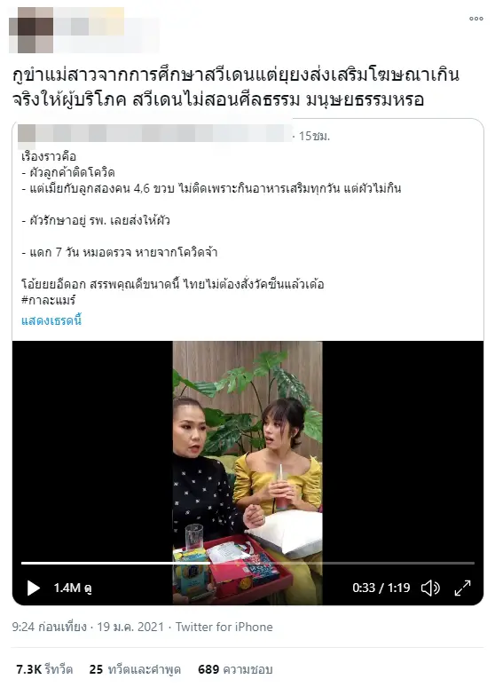โผล่อีกคลิป! ชาวเน็ต จวก กาละแม หลังอวดอ้างอาหารเสริมช่วยรักษาโควิดได้