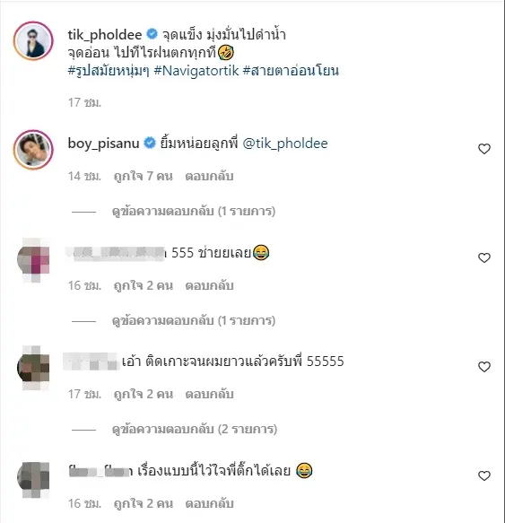 จนคนที่ติดตามในไอจีของ ติ๊ก เจษฎาภรณ์ เข้ามาคอมเมนต์กันจนไอจีเกือบแตก ถึงความหล่อที่เต็มอมตะของเจ้าตัว ไม่ว่าเวลาหรือทรงผม ก็ทำอะไรเจ้าตัวไม่ได้