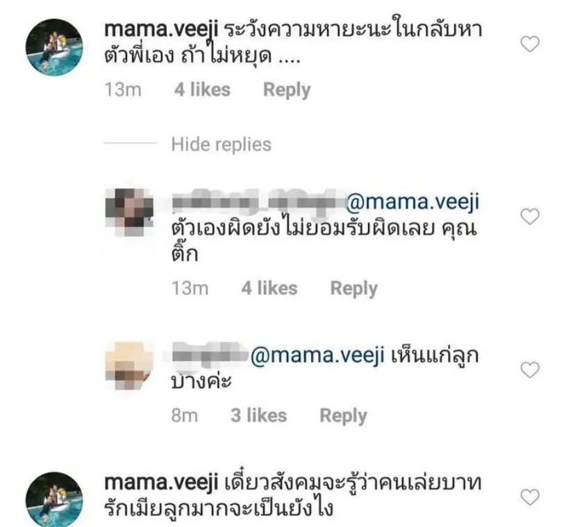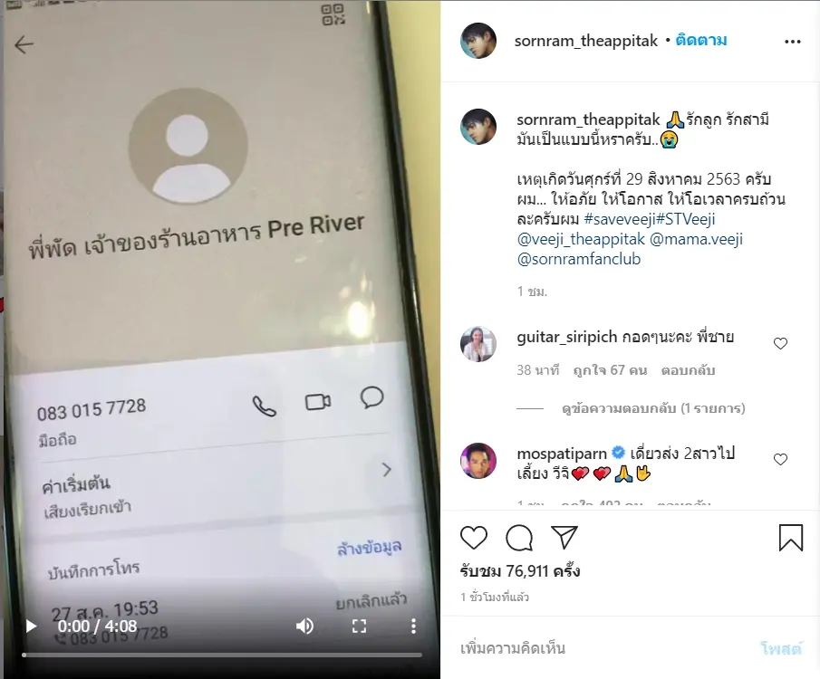 อย่างไรก็ตาม หนุ่ม ศรราม ยังเผยข้อความใต้คลิปว่า “?รักลูก รักสามีมันเป็นแบบนี้หราครับ..? เหตุเกิดวันศุกร์ที่ 29 สิงหาคม 2563 ครับผม… ให้อภัย ให้โอกาส ให้โอเวลาครบถ้วนละครับผม #saveveeji#STVeeji @veeji_theappitak @mama.veeji @sornramfanclub”
