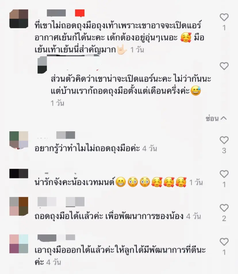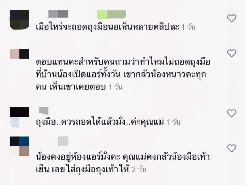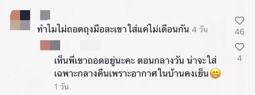 ล่าสุด เจ้าตัวได้ลงคลิปอวดความแบ๊วของน้องเวทย์มนผ่าน TikTok แต่ก็ดันเจอชาวเน็ตผู้หวังดีเข้ามาคอมเมนต์เตือนให้แม่ใบถอดถุงมือให้น้องกันเป็นแถว แต่ก็ยังมีชาวเน็ตบางส่วนที่ได้เข้ามาตอบแทนในอีกมุมว่า ที่แม่ใบยังใส่ถุงมือให้น้อง อาจจะเป็นเพราะว่าเปิดแอร์แล้วอากาศเย็นก็เป็นได้