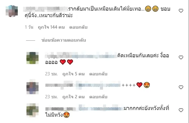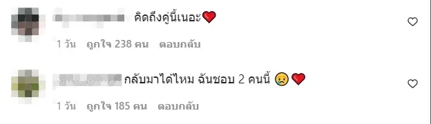 ก็ทำเอาทางด้านของคนที่เคยชื่นชอบต่างก็เข้ามาร่วมคอมเมนต์กันอย่างมากมาย บ้างก็ว่าชอบเคมีของคู่นี้ บ้างก็บอกว่าคิดถึง บ้างก็ว่าอยากให้กลับมาเป็นเหมือนเดิม ชอบในกิจกรรมที่ 2 คนนี้ทำเอาไว้