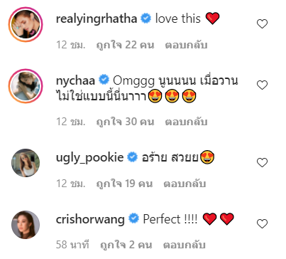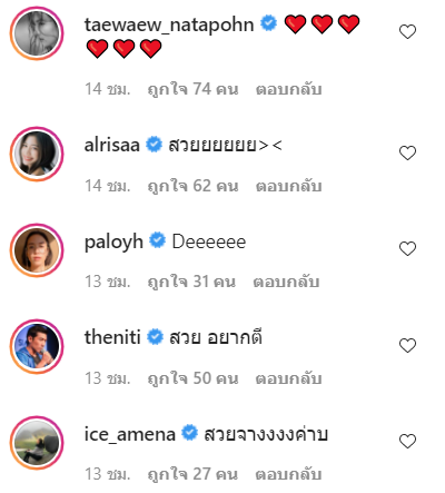 หรือแม้แต่เหล่าบรรดาเพื่อนในวงการ ก็ต่างไม่พ้น ขอมาร่วมแจมชมความสวยของสาวตัวเล็กคนนี้ด้วยอีกแรง ไม่ว่าจะเป็นแก๊งเพื่อนซี้อย่างสาวแต้ว และสาวมิว หรือแม้แต่ยายป๋อมแป๋มก็ต่างทนไม่ไหวต้องขอมาแซวซักนิดซักหน่อย