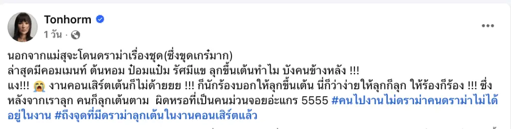 พร้อมแฮชแท็กปิดท้ายว่า #คนไปงานไม่ดราม่าคนดราม่าคนที่ไม่ได้อยู่ในงาน