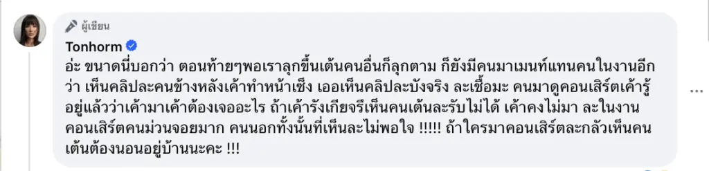 “คนที่มาดูคอนเสิร์ตรู้ว่าต้องเจออะไร ถ้าไม่ชอบเห็นคนเต้น ก็คงไม่มางาน… ใครไม่ไหวก็อยู่บ้านสิคะ!”