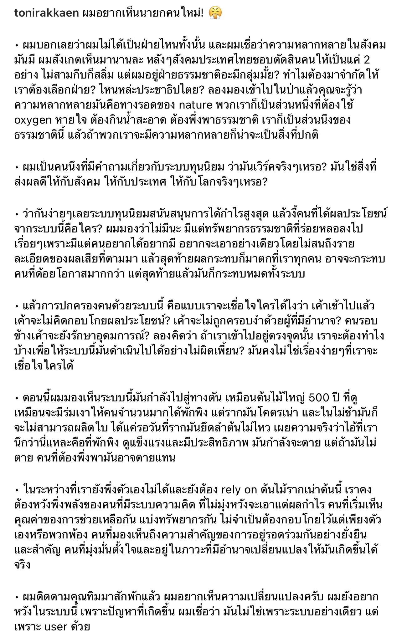 เรียกว่าโพสต์ร่ายยาว Call Out ได้เพียง 4 ชั่วโมง #โทนี่รากแก่น ก็พุ่งติดเทรนด์ทวิตเตอร์เลยทันที ซึ่งในการโพสต์ครั้งนี้หลายคนที่ได้อ่านข้อความก็ตั้งคำถามมากมาย นอกจากนี้ก็ยังมีหลายคนที่ออกมายอมรับว่าเสียดายที่ติดตามผลงานของ หนุ่มโทนี่ รากแก่น พร้อมทั้งเตรียมตัวพากันอันฟอลโล่หลังเจ้าตัวหลังเคลื่อนไหวทางการเมืองในครั้งนี้
