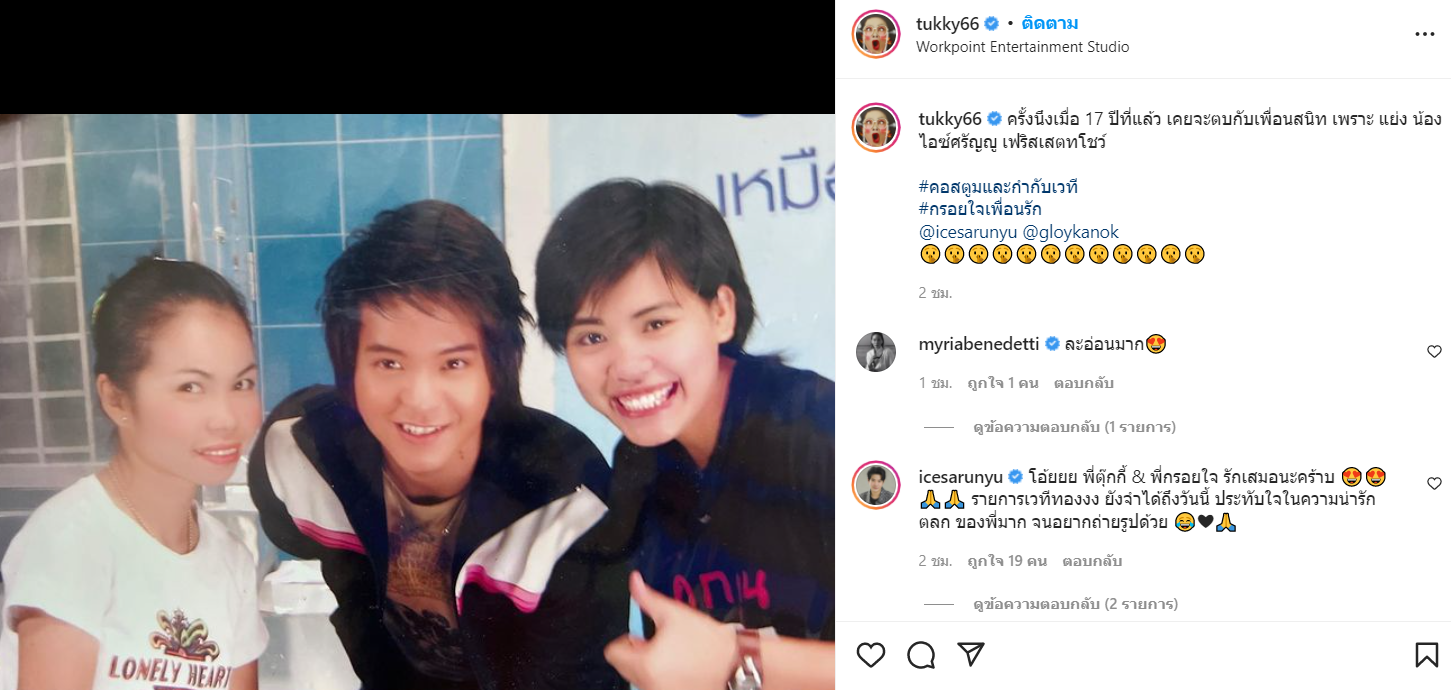โอ้ยยย พี่ตุ๊กกี้ & พี่กรอยใจ รักเสมอนะคร้าบ รายการเวทีทองงง ยังจำได้ถึงวันนี้ ประทับใจในความน่ารัก ตลก ของพี่มาก จนอยากถ่ายรูปด้วย ตุ๊กกี้ ก็ได้ตอบกลับไปขำๆ ว่า 55555 เรารักกันมา17 ปีละ พี่ไอซ์ ไม่เคยลดน้อยลง เลยมีแต่เพิ่มขึ้นๆๆๆ
