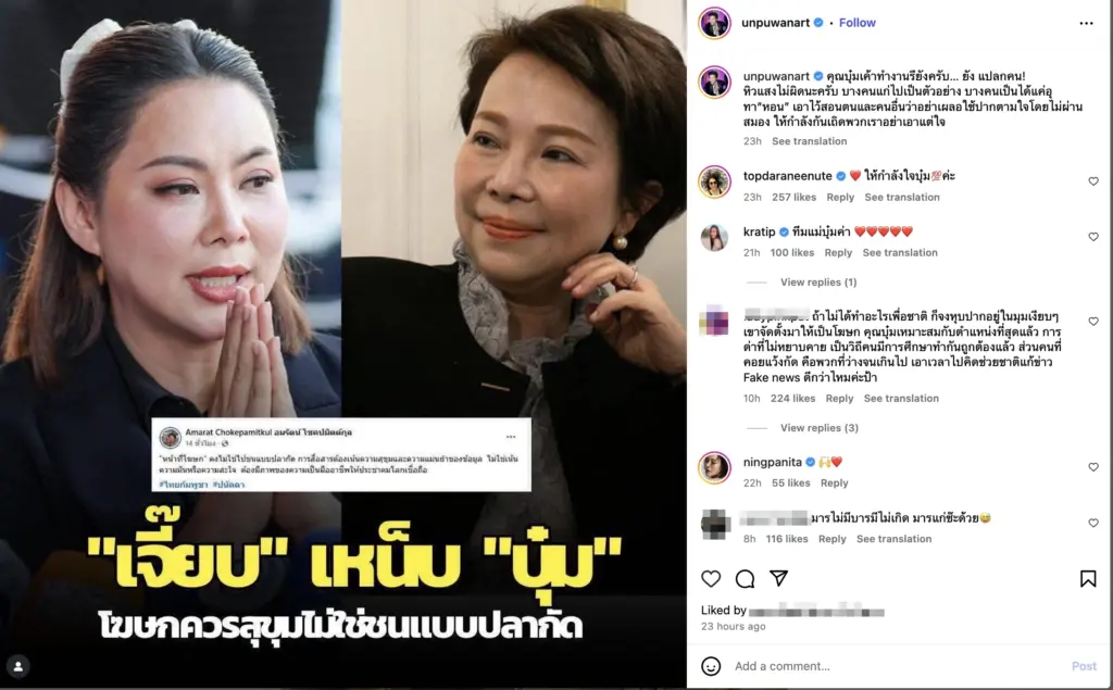 อย่างไรก็ตาม ฝั่ง บุ๋ม ปนัดดา ยังคงยืนยันทำหน้าที่ต่อไป และมองว่าการวิจารณ์เป็นสิ่งที่เกิดขึ้นได้เสมอในโลกโซเชียล เพียงแต่เธอขอให้ดูการทำงานจริงเป็นหลัก