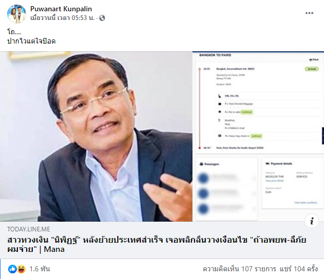 “ถึงกับไปค้นประวัติเลยค่ะ ว่าคนแบบไหนจะโพสท์อย่างนี้ไปได้ ….. เดาว่า จะว่านักธุรกิจเก่าก็ไม่น่าใช่ พวกนักธุรกิจที่มาถึงจุดการเมืองได้น่าจะรวยและมีความรู้เรื่องค้าขายต่างประเทศมากพอควร แต่ถ้ามาสายนักการเมืองท้องถิ่นแบบบ้านๆ ไม่น่าจะจ่ายจริง ถ้ามีคนยื่นคงเลี่ยงบาลีไปมา