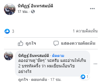ก่อนทางเจ้าตัว นิพิฏฐ์ อินทรสมบัติ จะออกมาตอบโต้ โดยการคอมเมนท์ใต้โพสต์ของอั๋น เป็นรูปภาพโพสต์ของตนเอง วงกลมคำว่า “แบบถาวร” และ “ลี้ภัย” พร้อมแสดงความเห็นต่อว่า