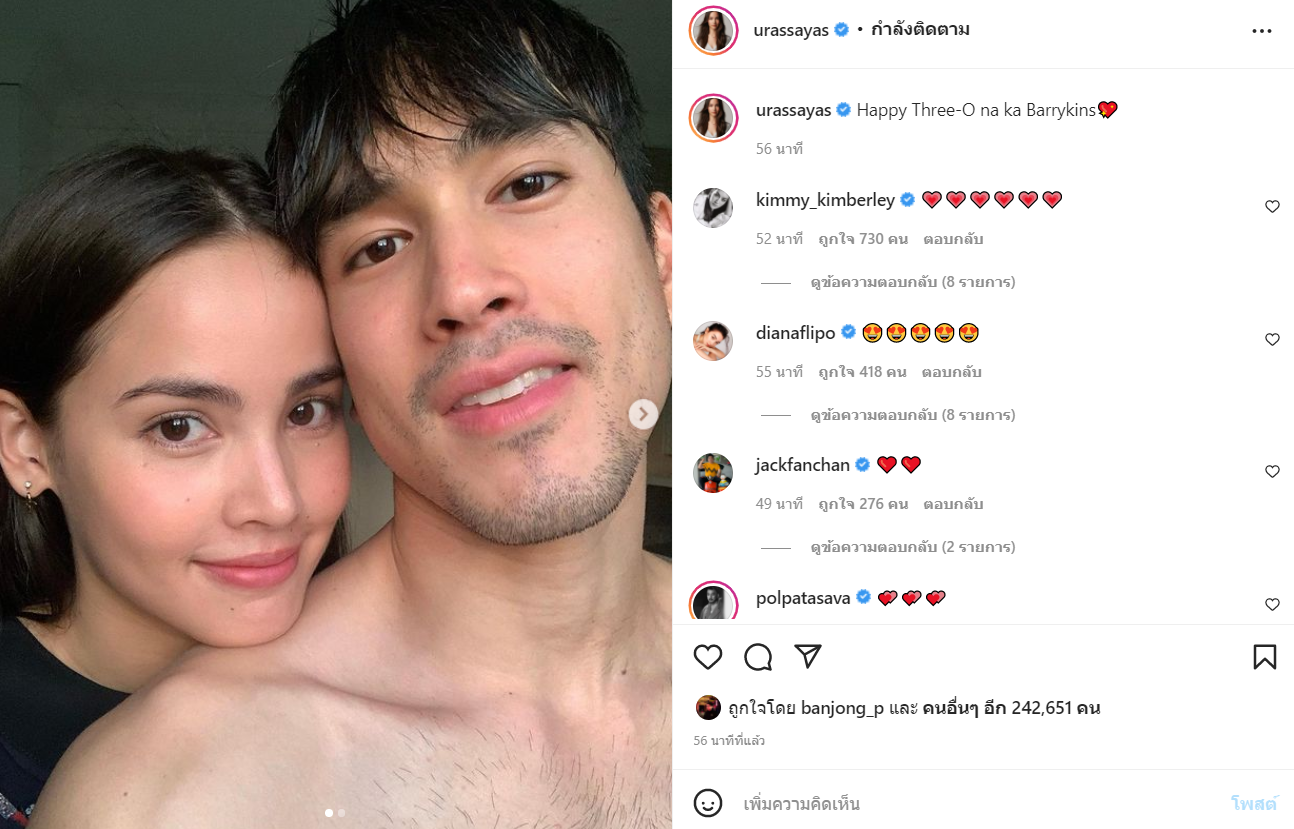 แต่ล่าสุดคุณพระ!! ทำเอาแตกตื่นทั้งไอจีหลัง ญาญ่า ลงภาพคู่ ณเดชน์ แบบหน้าชิดศูนย์องศา พร้อมแคปชั่นว่า Happy Three-O na ka Barrykins 💖 ทำเอาคนบันเทิงแห่คอมเมนต์กระจาย อาทิ คิมเบอร์ลี่ , แจ็คแฟนฉัน , มาร์กี้ ราศรี , กุ๊บกิ๊บ สุมณทิพย์ และอีกมากมาย แหม๋…หวานขนาดนี้จะมีข่าวดีเร็วๆนี้หรือเปล่า
