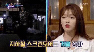เขา (V) จะเริ่มเต้นในสถานีรถไฟใต้ดิน ตรวจสอบการเคลื่อนไหวของเขาในเงาสะท้อนของประตูม่าน ฉันเคยดูเขาทำแบบนั้น… แต่เขาทำให้ฉันประหลาดใจจริงๆ