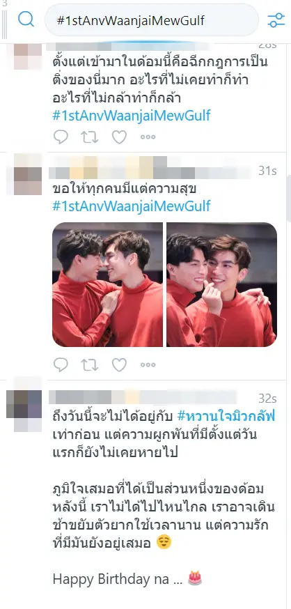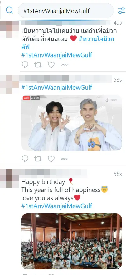 มิว-กลัฟ ค้างที่ 1 เทรนด์ทวิตเตอร์ประเทศไทยกันยาว ๆ เลย กับแฮชแท็ก #1stAnvWaanjaiMewGulf ของด้อมหวานใจมิวกลัฟ ที่มีอายุครบ 1 ขวบเป็นที่เรียบร้อยแล้ว !