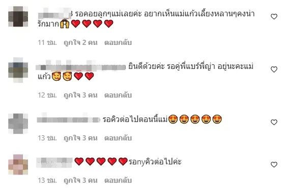 ซึ่งส่วนใหญ่แล้วก็ถามว่า คิวต่อไปคือคู่ไหน , ตอนนี้รอคู่ของ NY กันอยู่นะคะแม่แก้ว , ยินดีกับคู่ของหมาก แต่ยังรอข่าวคู่ของลูกชายคุณแม่อยู่ ไม่แน่ว่างานนี้อาจจะมีเซอร์ไพรส์รอบที่ 2 เป็นข่าวดีให้แฟน ๆ ได้ใจฟูกันอีกครั้งก็เป็นได้ เพราะช่วงนี้หนุ่มแบร์รี่ ก็ดูจะคลั่งรักแฟนสาวอยู่ไม่น้อยเลย