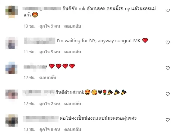 ทางด้านของคุณแม่สุดที่รักของณเดชน์อย่าง แม่แก้ว ก็ได้ออกมาร่วมโพสต์ข้อความแสดงความยินดีกับคู่ของหมากและคิม โดยในโพสต์นี้ของแม่แก้ว ก็เป็นการอวยพรให้กับความรักของทั้งคู่ แต่ในคอมเมนต์ก็ไม่วายที่จะมีแฟนคลับของคู่ ณเดชน์-ญาญ่า มาร่วมคอมเมนต์แสดงความยินดีและได้ถามถึงข่าวดีของคู่ ณเดชน์-ญาญ่า อีกด้วย