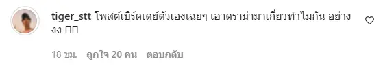 แต่งานนี้ก็ไม่วายโดนโยงดราม่าเรื่องราวระหว่างครอบครัวจากชาวเน็ตเข้าจนได้ ที่เข้ามาคอมเมนต์ในพื้นที่ของเสือต่าง ๆ นานา จนเจ้าตัวก็ทนไม่ไหว ขอออกมาระบายความรู้สึก ว่าแค่โพสต์วันเกิดตัวเองเฉยๆ เอาดราม่ามาเกี่ยวด้วยทำไม
