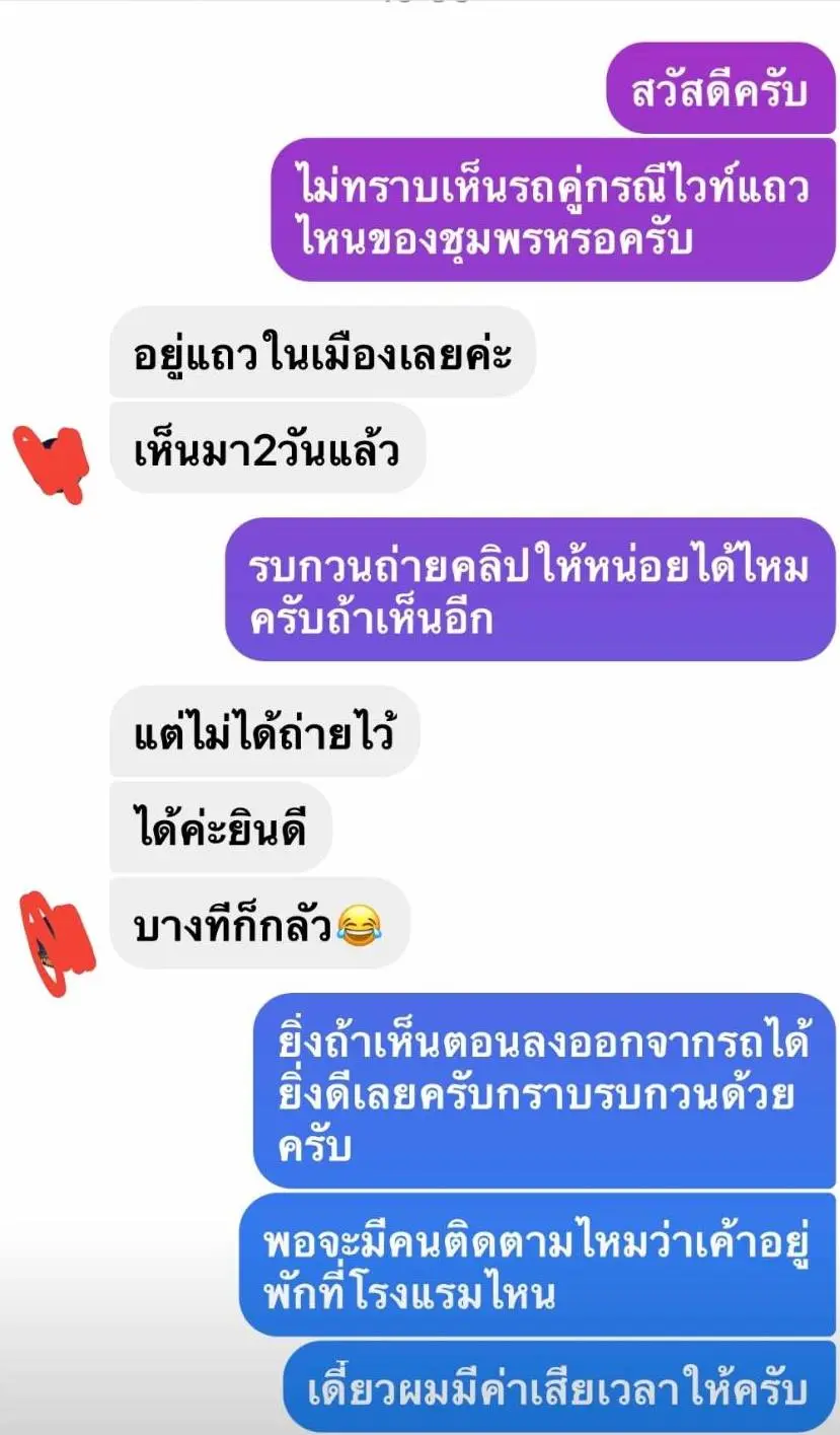ล่าสุดมีภาพหลักฐานรถเก๋งสีฟ้า มีรอยบุบด้านหลังซ้ายไปโผล่ที่จังหวัดชุมพร และพักอยู่โรงแรมแห่งหนึ่งแถวในเมือง ทั้งนี้คู่กรณียังไม่เข้าพบพนักงานสอบสวนตามหมายเรียก ซึ่งทางเจ้าหน้าที่ตำรวจได้ออกหมายเรียกไปตั้งแต่วันที่ 3 สิงหาคม 2564 และเจ้าหน้าที่บอกว่าคู่กรณีได้รับหมายเรียกเรียบร้อยแล้ว นอกจากนี้ยังมีข้อมูลอีกว่าฝั่งคู่กรณีได้มีการโทรศัพท์เข้าไปที่สถานีตำรวจ แต่ทางเจ้าหน้าที่ยืนยันว่าจะไม่มีการคุยทางโทรศัพท์ไม่ว่ากรณีใดๆก็ตาม ดังนั้นต้องไปตามหมายเรียกที่เจ้าพนักงานออกให้ ส่วนการข้ามจังหวัดในช่วงสถานการณ์โควิด19 นั้นก็ต้องว่ามีใบอนุญาติหรือไม่ หลังเดินทางไปจังหวัดชุมพร