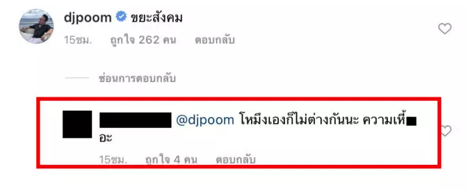 เรียกว่าจู่ๆก็โดนด่าสำหรับ ดีเจภูมิ หลังเจ้าตัวได้เข้าไปคอมเมนต์ในไอจี ไวท์ ณวัชร์ ว่า “ขยะสังคม” จากนั้นคู่กรณีไวท์ ได้มีการตอบโต้กลับว่า โห มึงเองก็ไม่ต่างกันนะความเหี้xอะ