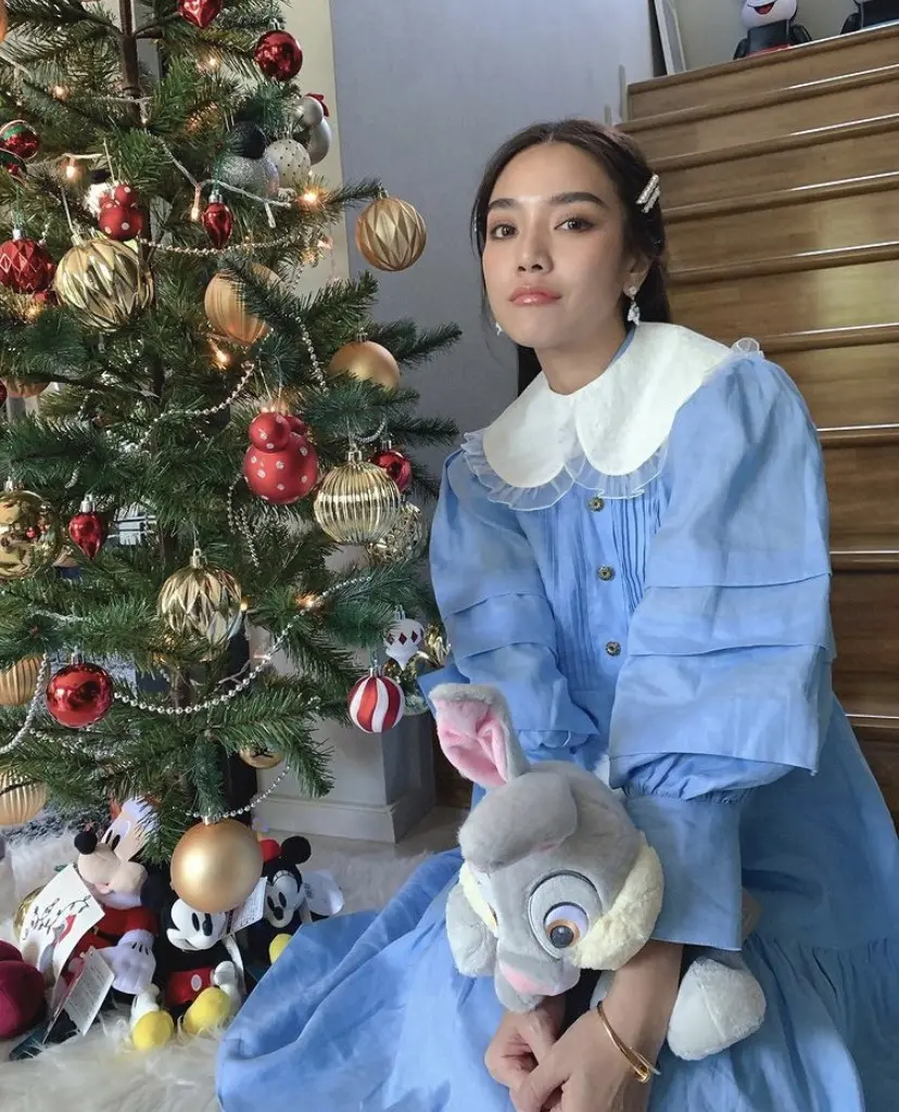 ล่าสุด เจ้าตัวมาในธีใชุดกระโปรงบานฉ่ำสีฟ้าสุดละมุน ข้างต้นคริสมาสต์ที่ประดับไว้ภายในบ้าน พร้อมกับกอดตุ๊กตาตัวน้อยไม่ปล่อย เอ๊ะ หรือหวานใจจะเป็นคนซื้อให้น้าา รักขนาดนี้มันต้องมีอะไรพิเศษแล้วแหละจริงม้าา