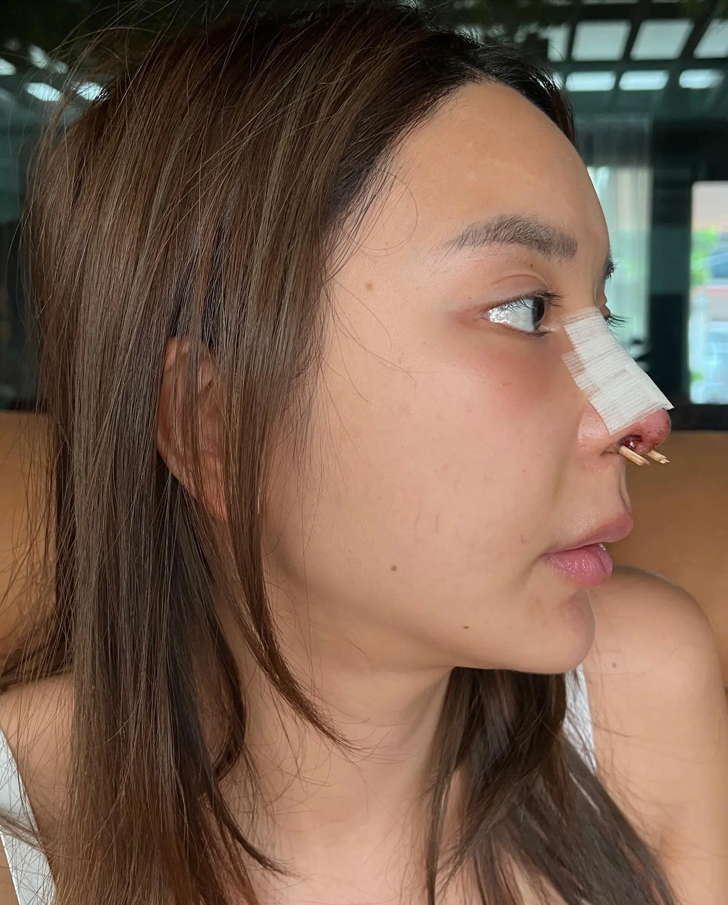 “ในเคสที่จมูกเคยติดเชื้อมาแล้ว โอกาสที่ผ่าตัดใหม่โดยใช้ซิลิโคน ก็จะมีโอกาสติดเชื้อซ้ำอีกได้ ดังนั้น คุณหมอต้องใช้กระดูกซี่โครงอ่อนมาทำจมูกใหม่ทั้งแท่ง ตั้งแต่โคนจมูกจรดปลายจมูกค่ะ ก็คือไม่มีซิลิโคนใด ๆ ทั้งสิ้น”