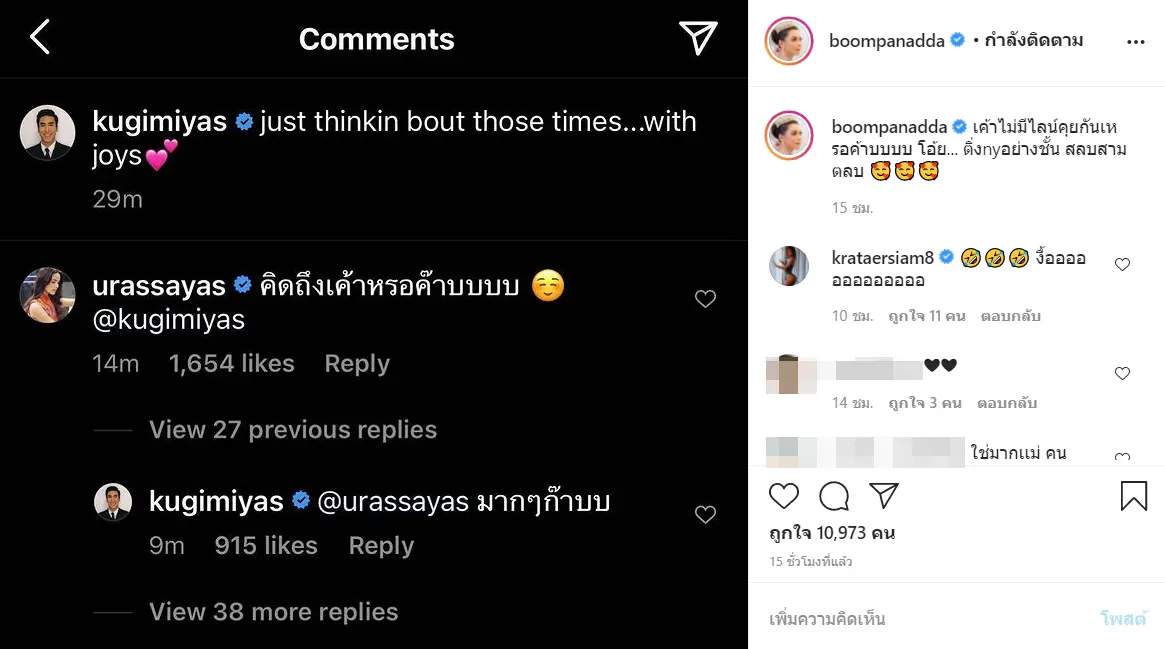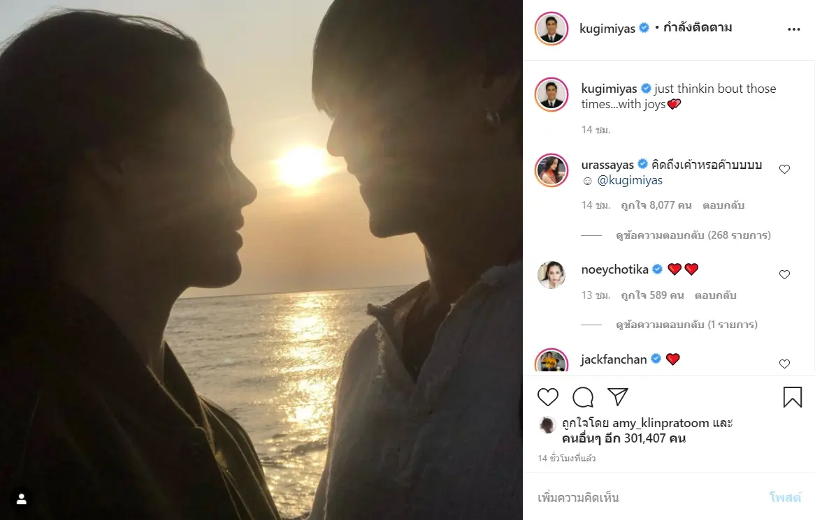 ถือเป็นอีกหนึ่งคู่ที่คนลุ้นกันมากที่สุด เพราะผ่านมาหลายปีแล้วก็ยังขยันสวีทกันไม่เคยแผ่ว โดยคราวนี้ หนุ่มณเดชน์ ก็ได้โพสต์ภาพคู่สาวญาญ่า พร้อมแคปชั่นหวานหยดว่า ‘just thinkin bout those times…with joys?’ ก่อนฝั่งคนสวยจะมาตอบว่า ‘คิดถึงเค้าหรอค๊าบบบบ ☺️ @kugimiyas’ งานนี้บอกเลย คอมเมนต์บอกให้แต่งเลย ๆ กันเป็นแถว