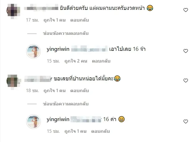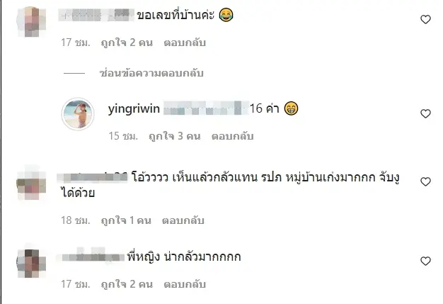 งานนี้ทำเอาชาวเน็ตที่เป็นนักเสี่ยงโชค เข้ามาตามขอบ้านเลขที่กันเป็นจำนวน ซึ่งทางด้านของหญิง ก็ไม่ได้เปิดเป็นความลับแต่อย่างใด บอกไปแบบตรงๆว่าบ้านเลขที่ 16 ใครที่เชื่อเรื่องสัตว์เลื้อยคลานให้โชค มีงูตัวใหญ่มาถึงที่แบบนี้ ก็น่าสนใจเป็นตัวเลขเก็บไว้ในใจได้อยู่ไม่น้อย
