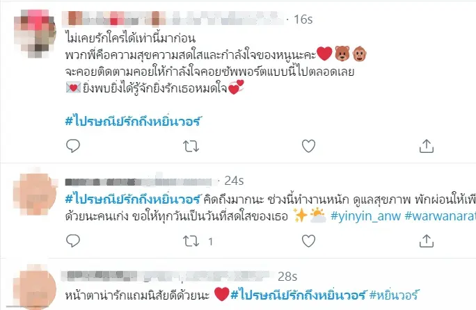 แฟนคลับ หยิ่น-วอร์ สุดน่ารัก บอกรักบอกคิดถึงกันจนขึ้นเทรนด์อันดับ 1 ด้วยการพร้อมใจกันทวีตข้อความผ่านแฮชแท็กไปรษณีย์รักถึงหยิ่นวอร์ เพื่อเป็นกำลังใจให้กับทั้งสองหนุ่ม ที่ต้องเจอกับอุปสรรคมากมายและการทำงานที่ต้องเจอ