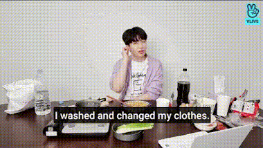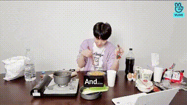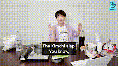 เมื่อไอดอลหนุ่มเห็นคอมเมนต์เกี่ยวกับ “กิมจิฟาดหน้า” จากแฟนๆ เขาก็เริ่มหัวเราะ แล้วหยิบถุงกิมจิขึ้นส่ายไปมาพร้อมบอกว่า “คุณอาจจะไม่รู้ว่ามันรู้สึกยังไงนะครับ…”