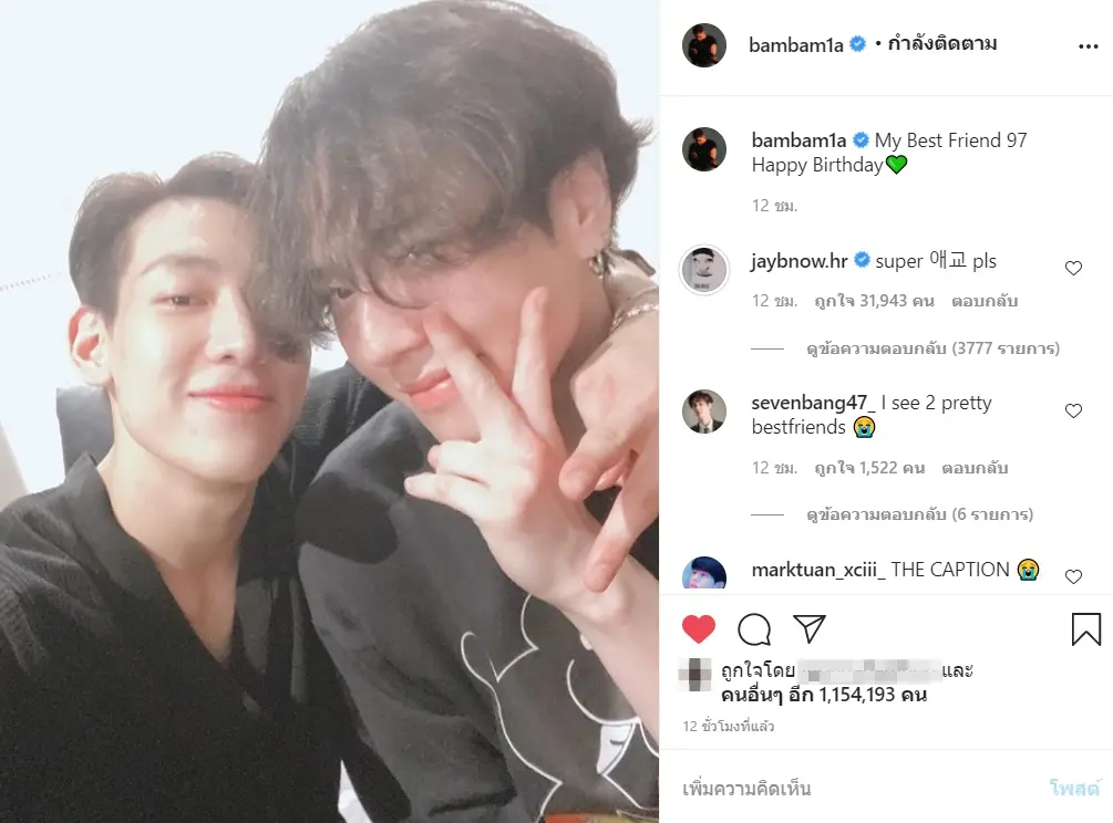 หลังจากที่หนุ่มแบมแบมได้โพสต์รูปอวยพรวันเกิดไปก่อนหน้านี้แล้วทางไอจี ล่าสุดก็ได้โพสต์วิดีโอเพิ่มทางทวิตเตอร์ ซึ่งเป็นคลิปที่เหล่าเมมเบอร์ร่วมฉลองวันเกิดกับเค้กก้อนโต พร้อมเชียร์ให้เจ้าของวันเกิดสุดหล่อทำท่าน่ารักกันยกใหญ่