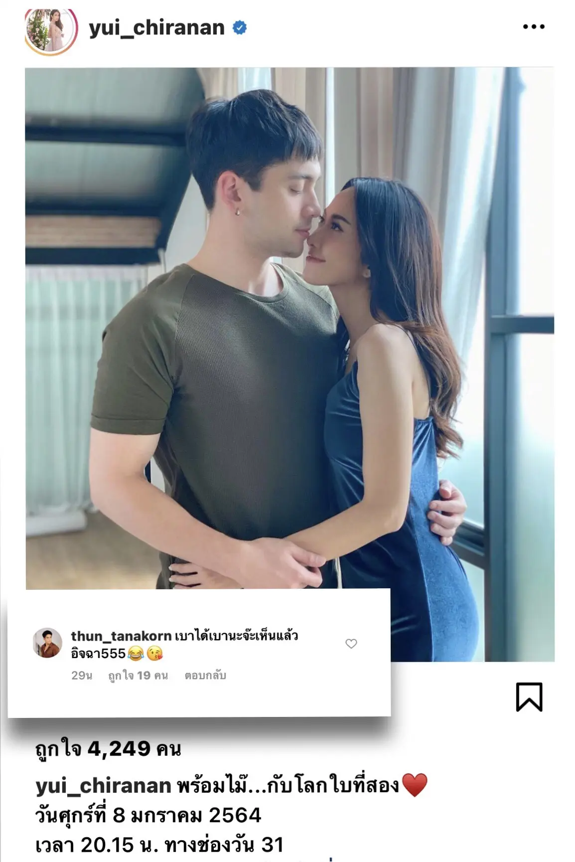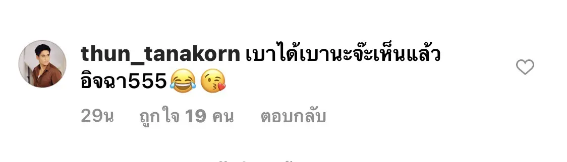 “เบาได้เบานะจ๊ะ เห็นแล้วอิจฉา 555 (พร้อมกับใส่อิโมจิร้องไห้และส่งจูบลงไป)” แหม๊ … ที่เป็นแบบนี้ก็เพราะ หวง นั่นแหละ!! ดูก็รู้ใช่ไหมจ๊ะ หนุ่มธันญ์ ไม่รู้ว่างานนี้จะมีไปตามเฝ้า เอ้ย ตามไปดูแลภรรยาที่กองหรือเปล่าน๊า แต่ที่แน่ๆหนุ่มธันญ์รอชมพร้อมกันกับแฟนๆละครใน วัน ศุกร์ ที่ 8 มกราคมนี้ เวลา 20.30 น. ทางช่อง one31 บอกได้เลยแรงเกินต้าน