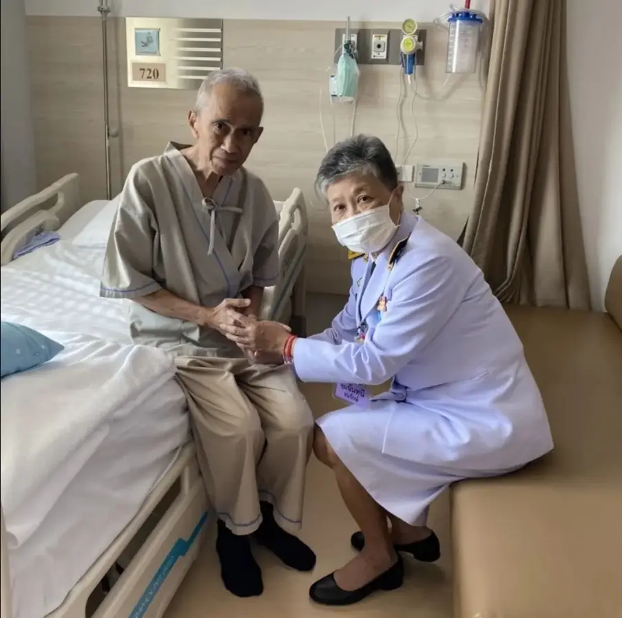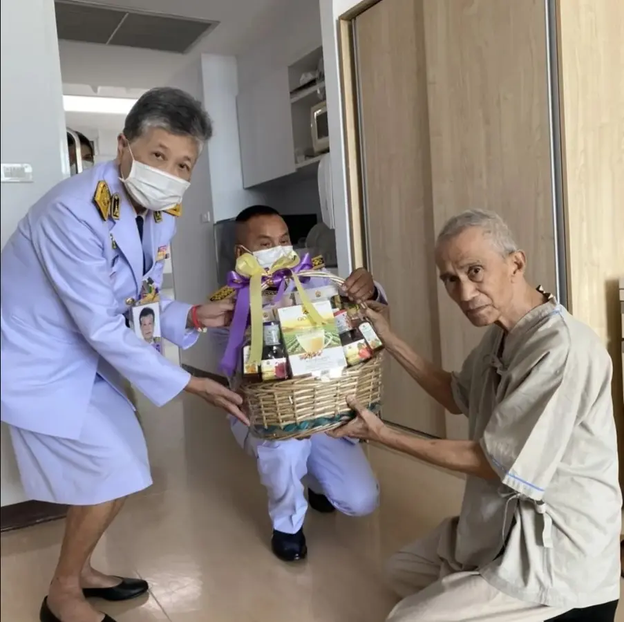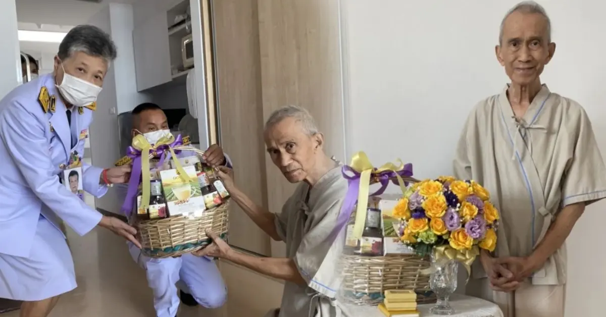 ในหลวงและพระราชินี ทรงพระกรุณาโปรดเกล้าฯ ให้ผู้แทนเข้ามอบพบ ต้อย เศรษฐา พระราชทาน แจกันดอกไม้และกระเช้าเยี่ยม ขณะรักษาตัวจากโรคมะเร็งปอด