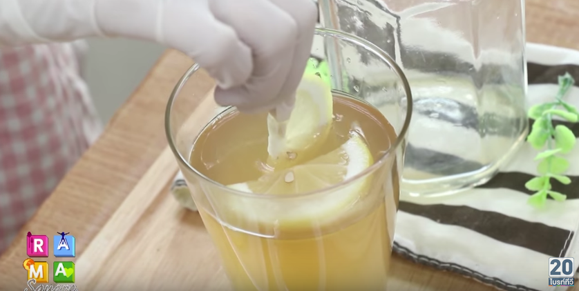 4. กรองน้ำชาใส่ในป้านชาสำหรับเสิร์ฟ และรินใส่ถ้วยน้ำชา ตามด้วยชิ้นเลมอนแก้วละ 1 ชิ้น และน้ำผึ้ง พร้อมเสิร์ฟ