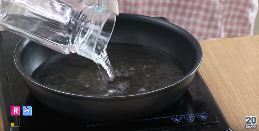 1. ต้มน้ำในหม้อ ด้วยไฟปานกลางพอเดือด