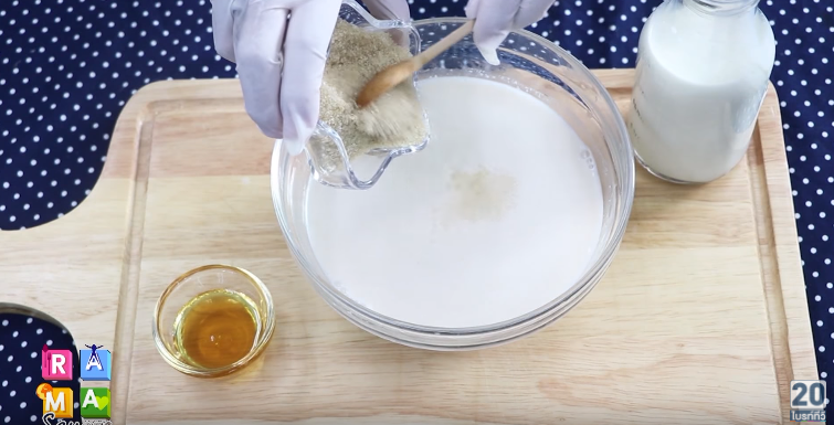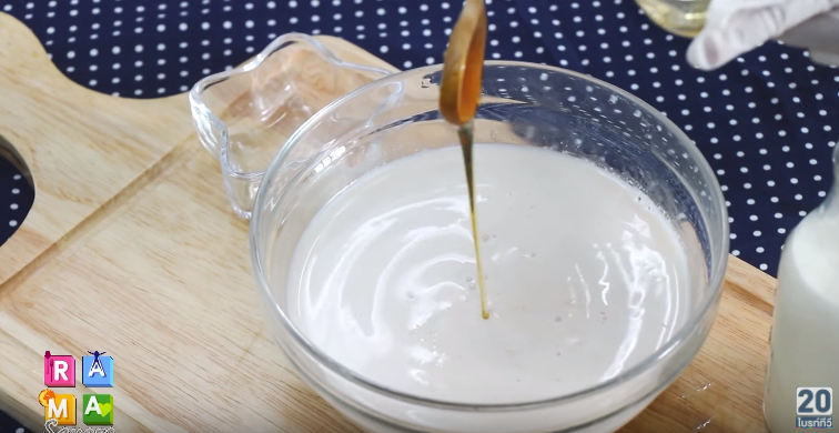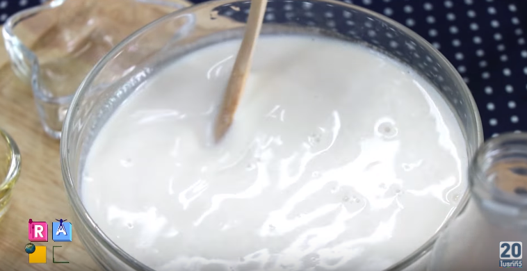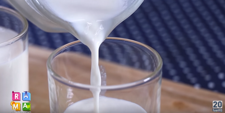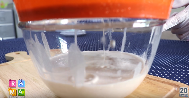 กรองเอาแต่น้ำไว้มาผสมกับส่วนผสมทั้งหมดที่เหลือ คือ น้ำตาลทรายแดง น้ำผึ้งและนมสด คนให้เข้ากัน
