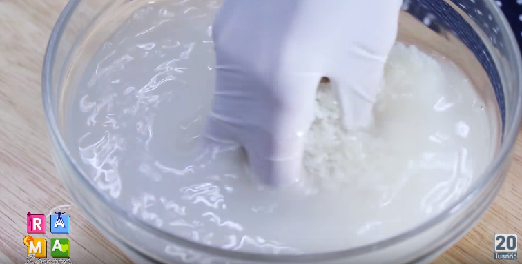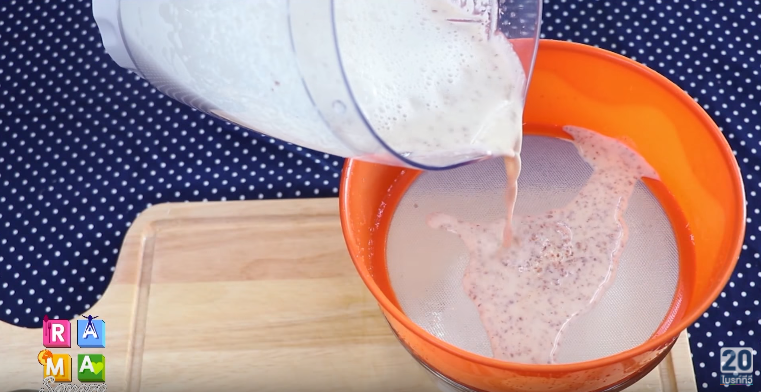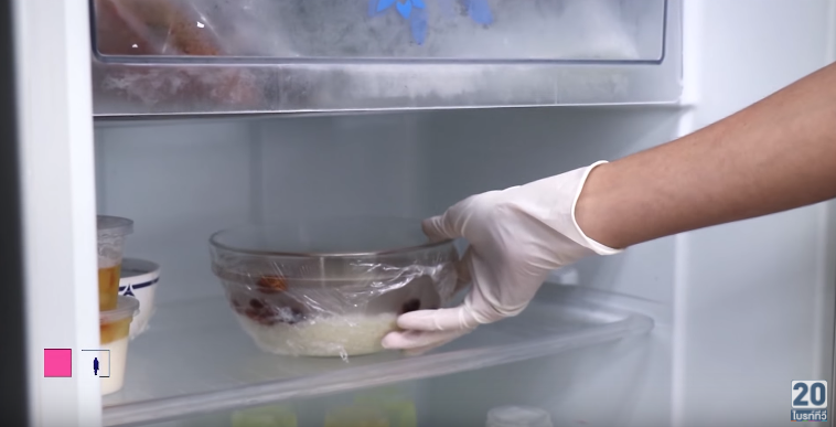 นำเข้าตู้เย็นไว้ 1 คืน วางไว้อุณหภูมิห้อง 3 ชั่วโมง แล้วนำเอาไปปั่นให้ละเอียด